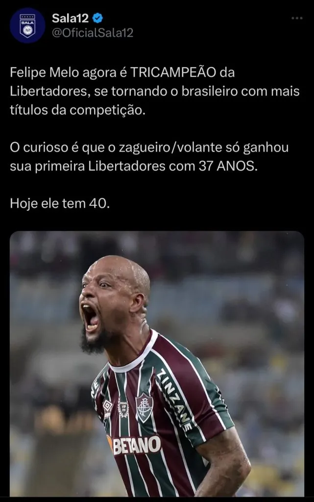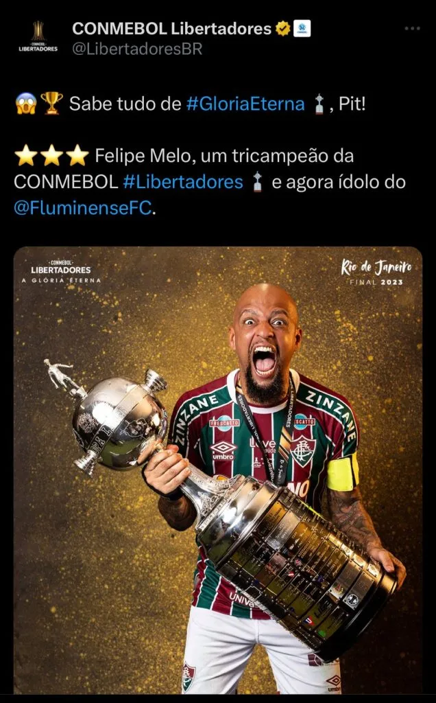 Após vencer o título com o Fluminense, se tornando tri-campeão da competição, Felipe Melo fez questão de cutucar um dos principais rivais da equipe das Laranjeiras.