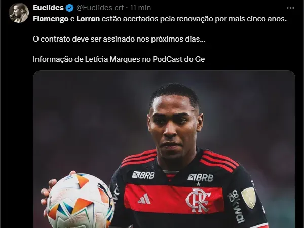 Lorran tem multa rescisória fixada em 50 milhões de euros (algo em torno de R$ 279 milhões na cotação atual). A expectativa é que essa quantia ultrapasse os R$ 300 milhões.