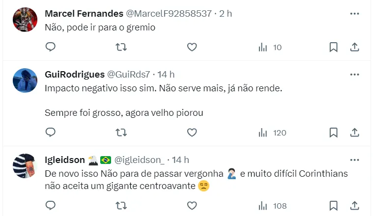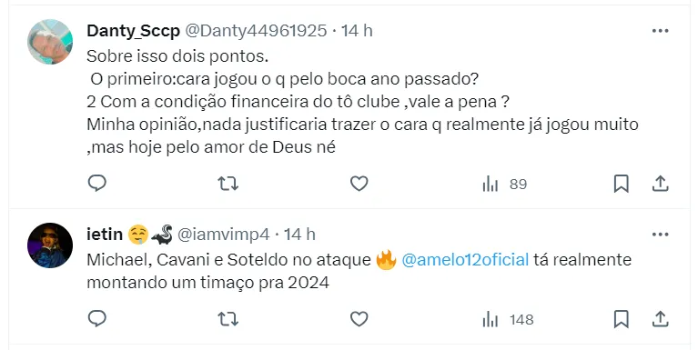 “O Corinthians está querendo trazer o Cavani. Seria uma contratação de impacto para chegar chegando o novo presidente do Corinthians (Augusto Melo). Vamos Aguardar”, disse o jornalista.