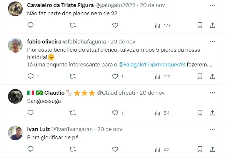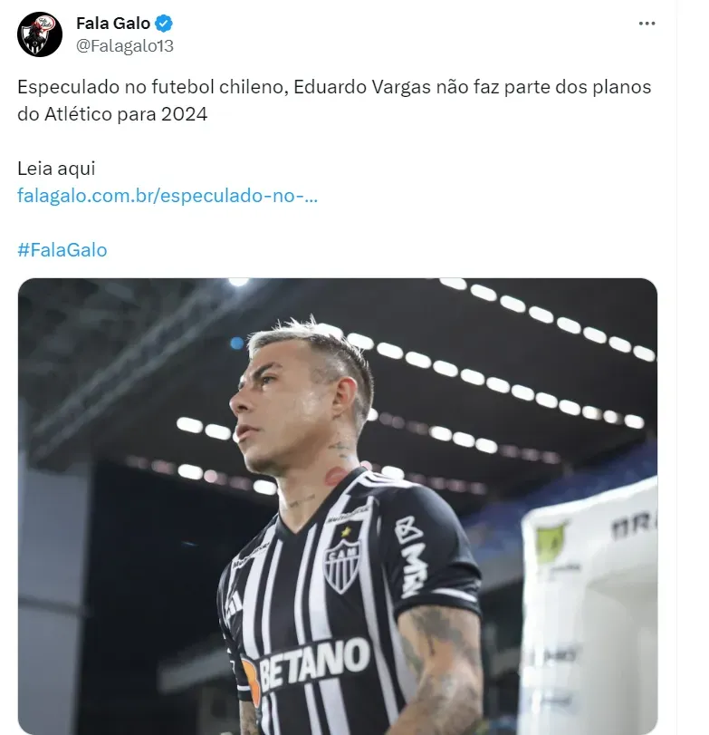 Eduardo Vargas não encontra-se nos planos do Atlético-MG para 2024 e será negociado, seja em definitivo ou por empréstimo. O motivo se dá devido ao pouco espaço que ele vem tendo com Felipão, além de outras questões.