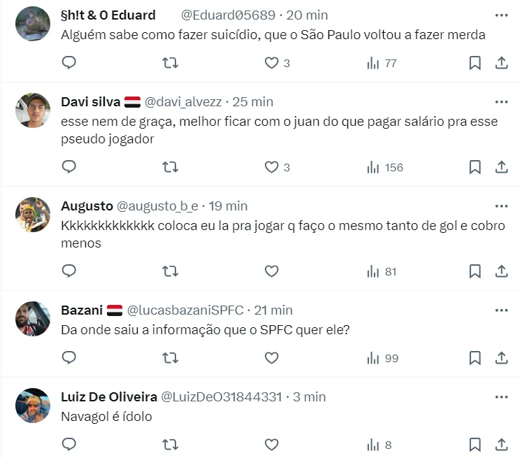 Navarro pertence ao Palmeiras e está emprestado ao futebol dos Estados Unidos até julho. Há chance de um acordo ser selado por empréstimo sem custos, com o Tricolor pagando apenas o salário. Informação de Rafael Emiliano.