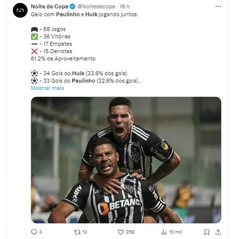 Com o reconhecimento de Neto e os números expressivos, Hulk e Paulinho se consolidam como uma dupla imbatível, contribuindo de forma significativa para as aspirações do Atlético-MG em todas as competições em que estão envolvidos.