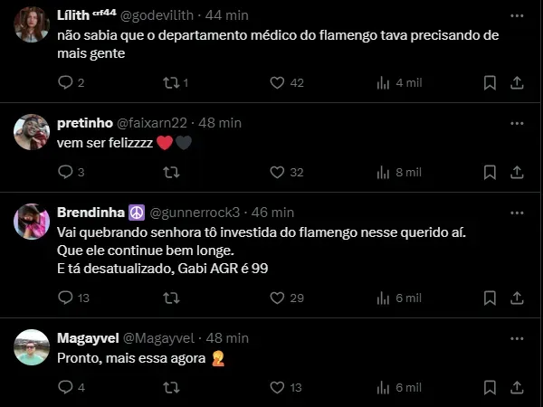 Por outro lado, no decorrer das últimas semanas Gabi acabou flagrado com a camisa do Corinthians em um churrasco. O assunto deu o que falar e fez ele perder a 10 para passar a usar o número 99 nos jogos do CRF.