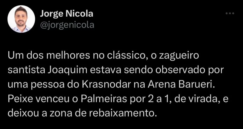 Segundo informações do jornalista Jorge Nicola, o Santos pode perder o zagueiro Joaquim, que vem se destacando no Alvinegro praiano.