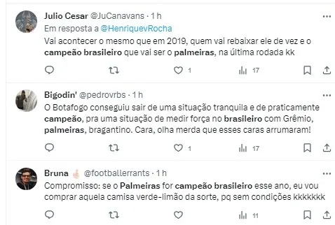 Mesmo com um jogo a menos a ser disputado pelo Botafogo, Nilson César aposta suas fichas no time alviverde. Ele acredita que o Palmeiras, sob o comando de Abel Ferreira, tem mais qualidade em comparação aos adversários, o que pode ser decisivo na briga pelo título do Brasileirão.