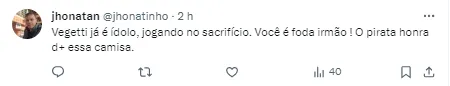 Quem também chamou atenção na partida, mas o atacante Vegetti que quase fez um belo gol de cabeça, e perdeu uma oportunidade incrível. Mas a verdade é que o atacante está com uma fissura na costela e chega como outro “baque” para a comissão e torcida.