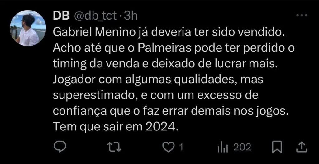 O meio-campista Gabriel Menino esteve perto de uma transferência recente para o Manchester United, porém, a negociação não avançou.