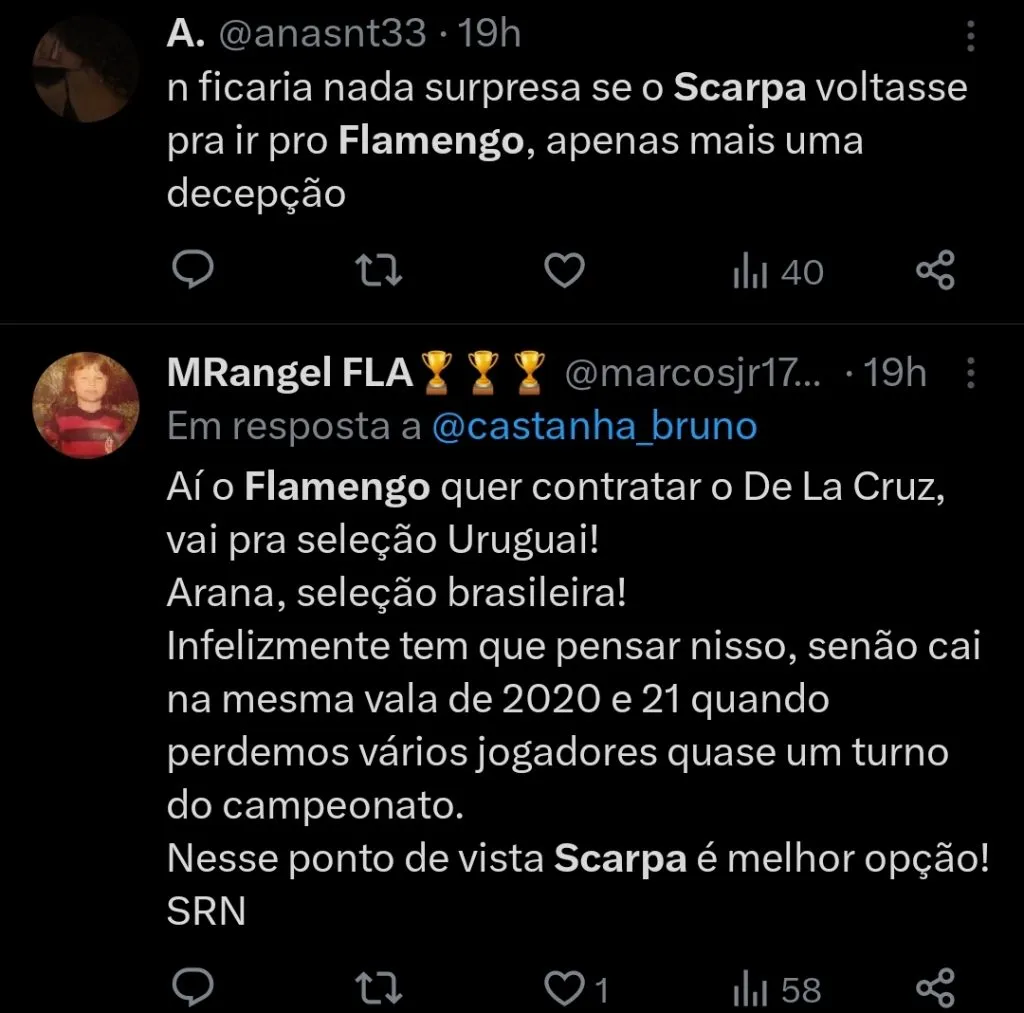 Inclusive, segundo apuração do jornalista PVC, o Nottingham Forest, atual detentor do passe de Scarpa, não descarta negociá-lo na próxima janela de transferências.