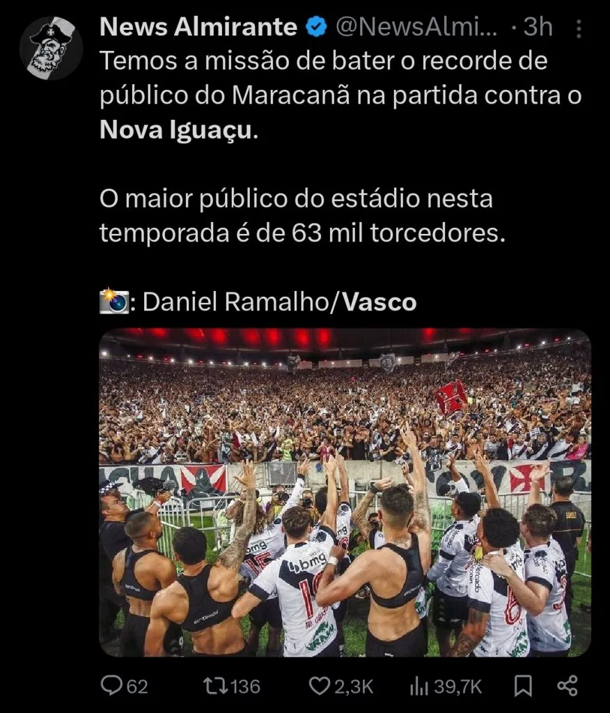 O único resultado negativo do Vasco no ano é justamente frente ao Nova Iguaçu, quando no dia 31 de janeiro perdeu pelo placar de 2 a 0 para a equipe da região metropolitana do Rio.