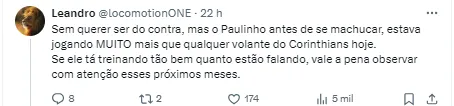 Enquanto isso, o elenco do Corinthians vem treinando no CT Joaquim Grava e um dos jogadores voltou a chamar a atenção da torcida corintiana: o volante Paulinho.