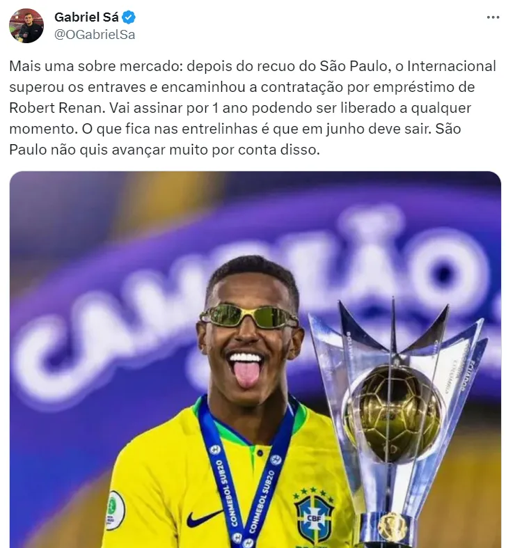 Robert Renan chegará ao Internacional junto ao clube russo em um contrato de 1 ano. O que está em jogo, neste momento, é sobre a possibilidade do defensor deixar o Inter em junho, diminuindo, assim, o tempo do empréstimo.