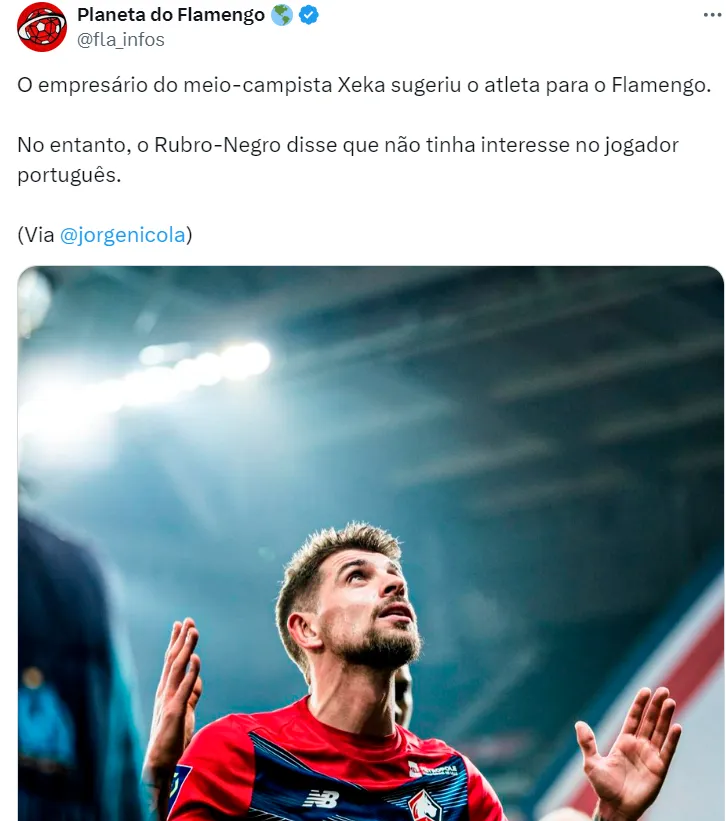 Livre no mercado da bola, o português Xeka foi oferecido ao Flamengo diante de empresários e o clube carioca, que está de olho na chegada de um volante, se decidiu sobre ou não contratar o jogador.