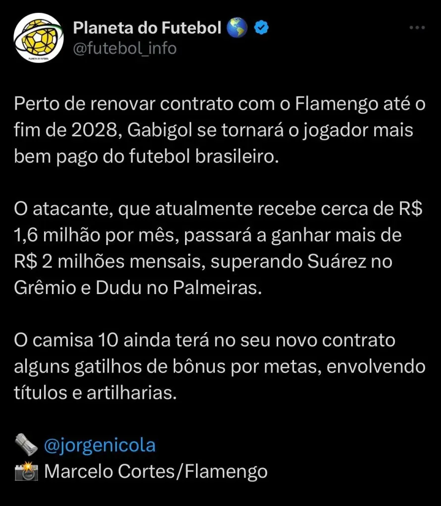 O novo vínculo seria até o fim de 2028, e o aumento salarial transformaria o jogador em um dos mais bem pagos do Futebol Brasileiro.