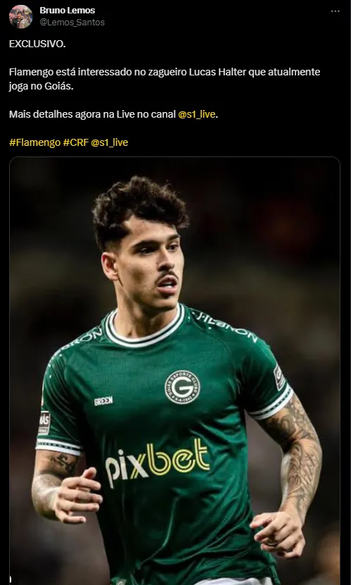 Porém, outro zagueiro entrou na mira. De acordo com as informações publicadas pelo jornalista Bruno Lemos, o Flamengo tem interesse na contratação de Lucas Halter, do Goiás.
