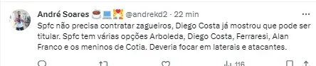 Diante disso, o clube está preparando uma oferta de renovação para o zagueiro Diego Costa, segundo informações publicadas pelo jornalista Andre Hernan.