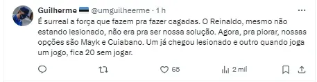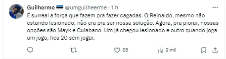Mas o que chamou a atenção da torcida e ligou o alerta do clube foi a notícia da última terça-feira (5) O departamento médico confirmou a lesão de Reinaldo em dois ligamentos do joelho e é possível que o jogador nem retorne até o fim do Campeonato Gaúcho.