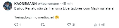 A lesão do jogador chega em um momento complicado para o técnico Renato Portaluppi. Isso porque o jogador é titular incontestável da equipe desde a temporada passada.