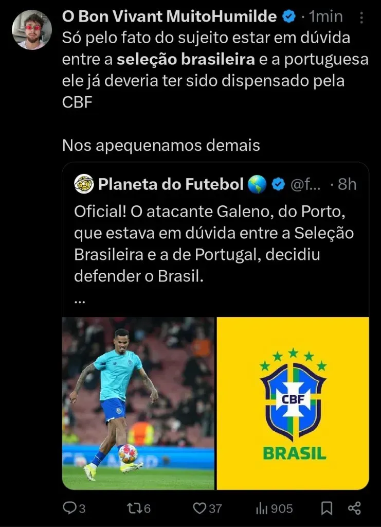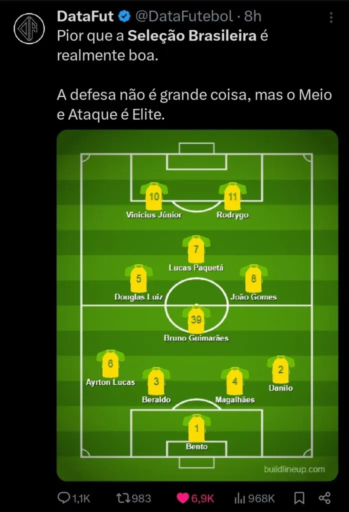 Primeiro é importante levar em consideração todos os convocados, com as substituições feitas pelo técnico Dorival na Seleção e consequentemente projetar o potencial time titular, que o autor considera ser o mais adequado nestes compromissos de preparação para a Copa América.