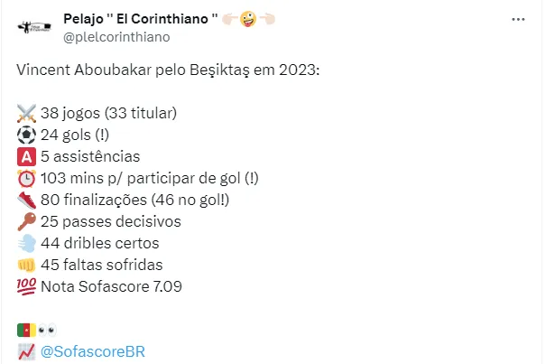 Assim, no início da semana, o portal Meu Timão noticiou que Aboubakar teria sido oferecido ao Corinthians, que busca um camisa 9 de peso para a nova temporada.