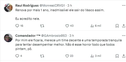 Muitos torcedores gostariam de vê-lo em mais uma temporada vestindo a camisa do Vasco, mas outros já entendem que o jogador não consegue mais desempenhar o bom futebol que tem.