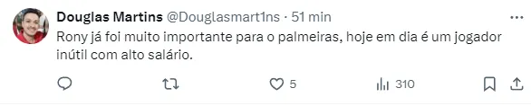 O torcedor, principalmente no futebol brasileiro, tem memória curta. Caso Rony não dê a volta por cima, logo estará sendo ainda mais cobrado. Respirar novos ares seria o ideal.
