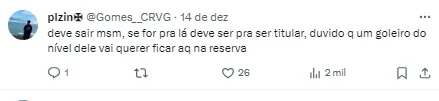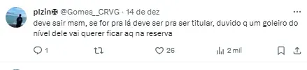 O fato é que o Vasco tem que buscar uma solução para a dupla. Léo Jardim deve ser titular em 2024, mas a equipe corre o risco de perder dois goleiros ‘de uma vez’. Outros goleiros não tiveram oportunidades no ano, sequer estrearam como titular, como por exemplo Cadu, de 20 anos.