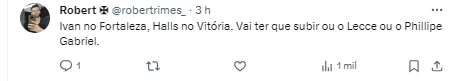 Assim como Halls. O jogador foi o terceiro goleiro do Vasco e o Vitória, que garantiu o acesso para a Série A de 2024, está interessado na contratação.