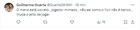 O jogador é o centroavante do time, que tem sofrido críticas por parte da torcida. Mas em um momento que, mesmo sendo começo da temporada, é importante a torcida ter paciência, ainda mais se tratando em um clássico em casa.