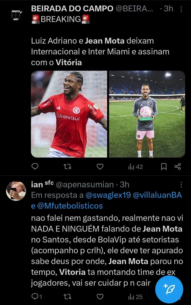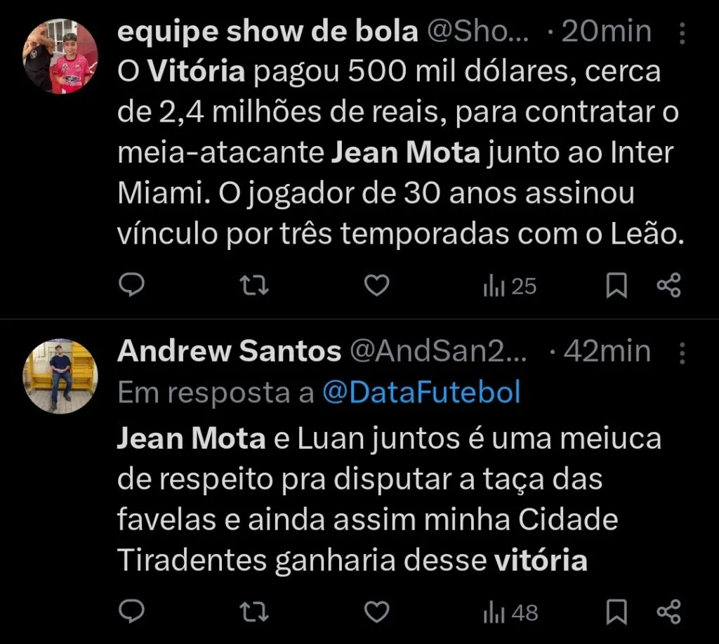 Os dois últimos anúncios do EC Vitória tratam-se de Jean Mota e Luiz Adriano, ambos jogadores com experiência, lampejos de alto nível no histórico recente e capazes de serem titulares do time de Salvador.