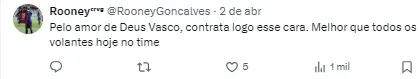De acordo com o jornalista Joel Silva, do canal “Atenção Vascaínos”, o clube espera avançar na negociação pelo gringo neste sábado (6). Vale lembrar que o América-MG fará um amistoso com a equipe vascaína em São Januário.