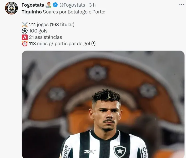 Tiquinho teve um grande ano de 2023 com o Botafogo, especialmente no primeiro turno do Brasileirão, onde ele comandou o time do Botafogo, marcando gols e decidindo jogos.