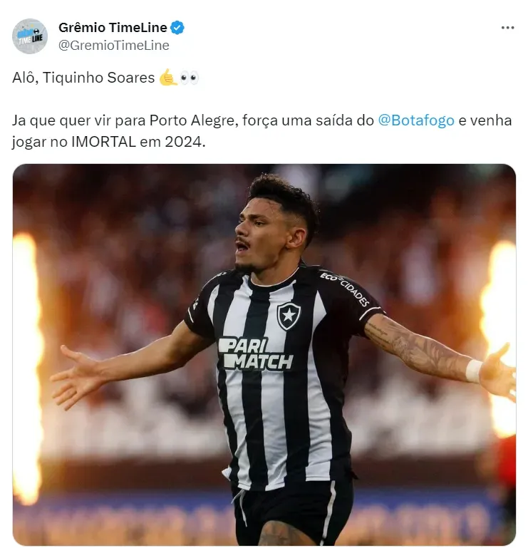 Todavia, em caso de oferta, somado pela vontade do atleta, um acordo poderia acontecer, já que o Glorioso nada poderá fazer – essa pensamento nasce com a vontade do jogador em ir para o Grêmio, com o Botafogo vetando o acordo final.