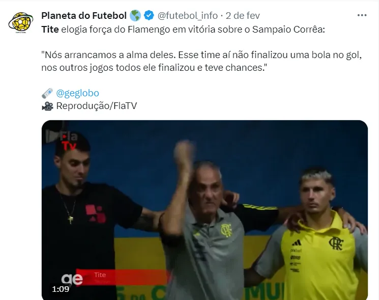 O Flamengo treinado por Tite deve ser o time a ser batido em 2024. Acima, inclusive, do Palmeiras, de outro gênio, Abel Ferreira. O gigante do Rio de Janeiro tem os melhores jogadores, o melhor técnico e por cima o melhor elenco.