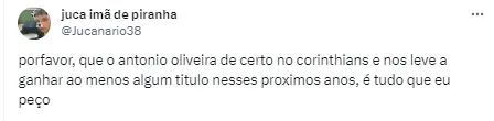Mudanças vão acontecendo. O próximo passo era encontrar no mercado um substituto para Mano e António Oliveira está prestes a ser anunciado pelo Corinthians. O treinador deixou o Cuiabá e desembarcou na noite da última quinta-feira (8) para topar o desafio.