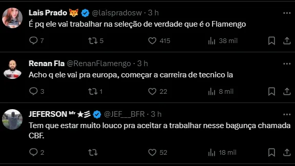 A resposta do multicampeão pelo Flamengo já chegou à Confederação. Ele se sente “extremamente honrado”, conforme destaca aos interlocutores, e prioriza se capacitar para ser treinador.