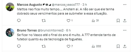 Segundo o GE, inclui pelo menos sete análises com a 777 Partners, a dona da SAF do Vasco, para então, definir a contratação. Mattos está conhecendo os critérios.