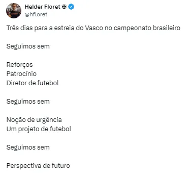 Ainda assim, é possível fazer uma boa temporada. Ao menos buscar uma vaga em uma competição internacional. Por isso, é de extrema importância o elenco vascaíno ter foco total na competição.