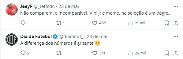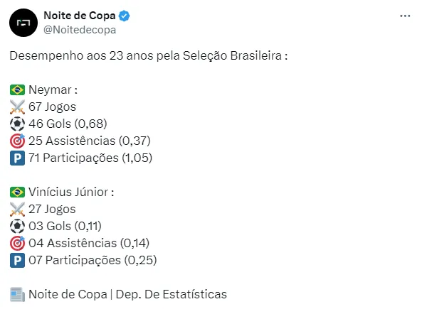 Entretanto, é fato que o camisa 10 ainda é o principal jogador da Seleção Brasileira. Nomes como os de Vinicius Jr. e Rodrygo, mesmo com o enorme potencial, ainda não conseguem causar o mesmo impacto.