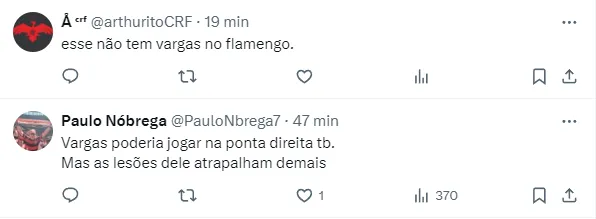 Dito isso, um nome que teria sido sondado pelo Flamengo, de acordo com Felipe Fontoura, é o de Eduardo Vargas. O chileno perdeu espaço e está de saída do Atlético Mineiro.