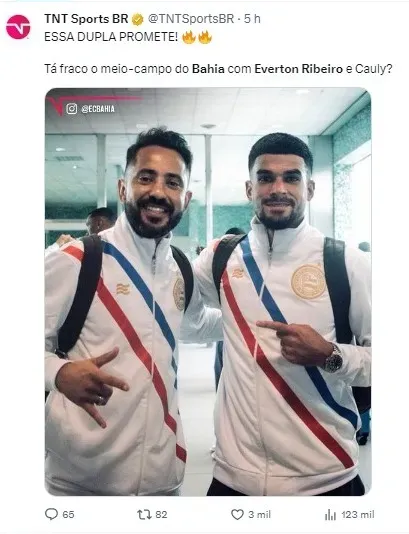 É notável que Everton Ribeiro vislumbra uma parceria promissora com Cauly no Bahia. Durante sua apresentação como reforço tricolor, o meia expressou seu respeito pelo novo colega de equipe, destacando a qualidade de Cauly e a expectativa de formarem uma dobradinha criativa no meio de campo.