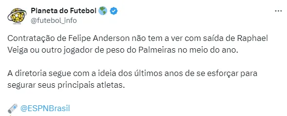 A contratação surpreendeu até mesmo aos torcedores e jornalistas. Não havia sequer um rumor de que Felipe Anderson poderia voltar ao Brasil já na próxima janela de transferências.