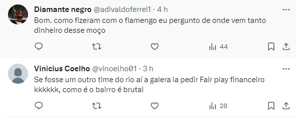 A torcida do Botafogo, claro, está extremamente contente com a chegada do atleta. Depois de um sofrido 2023, os fãs já começam a enxergar 2024 com novos olhos.