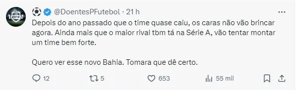 Se irá ou não conseguir os reforços, será outra história. Entretanto, o Bahia do Grupo City mostra que está disposto a buscar voos mais altos já para 2024. Quem sabe com uma vaga na Libertadores.