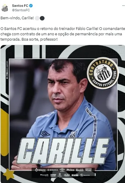 Carille retorna ao Santos com um contrato de uma temporada, com a opção de renovação por mais um ano. Sua missão principal será conduzir o time na Série B do Brasileirão e buscar o retorno à elite do futebol brasileiro.