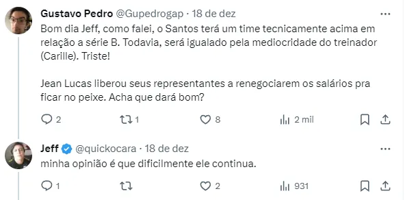 Carille, inclusive, já havia comandado o Peixe entre os anos de 2021 a 2022. Na ocasião, foram apenas 25 jogos sob o comando da equipe, com nove vitórias conquistadas.