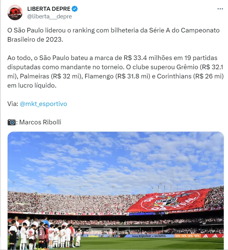 Esses são os três clubes que deverão ser os protagonistas do futebol brasileiro em 2024. Mas, é claro, podem haver surpresas, porque não. O São Paulo é o atual campeão da Copa do Brasil, por exemplo.