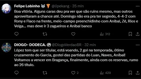 Por outro lado, o Verdão se mantém regular, com triunfo simples contra o Massa Bruta, por 1 a 0, e segue forte apesar dos desfalques que tem. Abel Ferreira precisa preencher lacunas por lesões.
