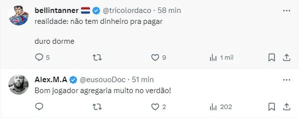 Entretanto, nesta manhã, o jornalista Henrique Toth jogou um ‘balde de água fria’ nos torcedores ao revelar que o atual campeão brasileiro não tem interesse na contratação.