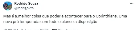 Tempo ao tempo. Cabe ao time continuar sendo uma equipe com poder de reação, o que deu para notar com o novo treinador. Restam alguns compromissos, é verdade, mas a “pré-temporada” vai servir de lição para o Corinthians não sofrer mais momentos de sufoco no restante do ano.