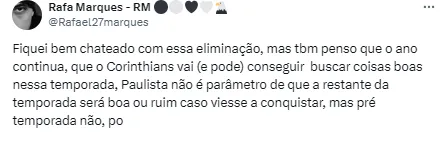 E agora? Como fica o elenco diante de uma queda precoce na primeira competição do ano? O clube se planeja para compensar o período sem partidas com amistosos e usar a Neo Química Arena para compensar o lado financeiro, por exemplo.